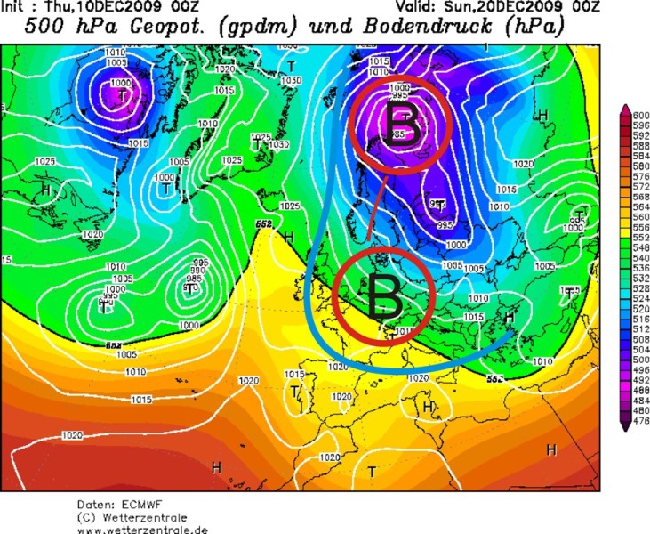 Questo HP in un primo momento sarà il responsabile del peggioramento del fine settimana con aria fredda polare che scivolerà sul suo bordo orientale e si lancerà diretta verso l'europa centrale e verso i paesi del mediterraneo.