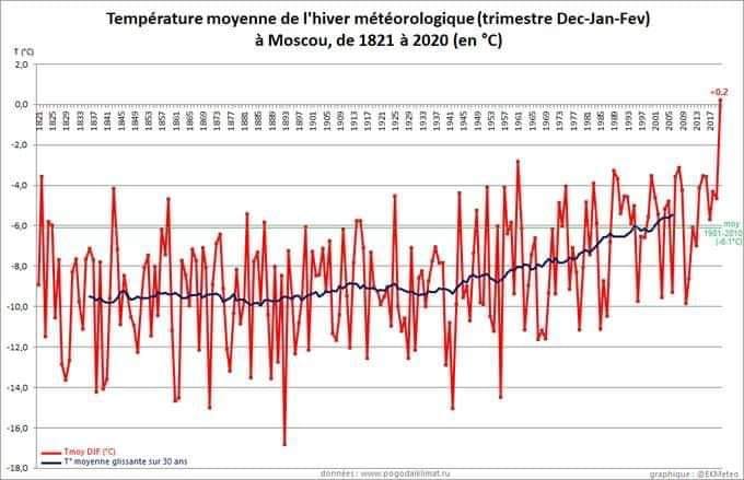 Mai così caldo a Mosca da 200 anni, per la prima volta la T MEDIA invernale è riuscita a superare lo 0°