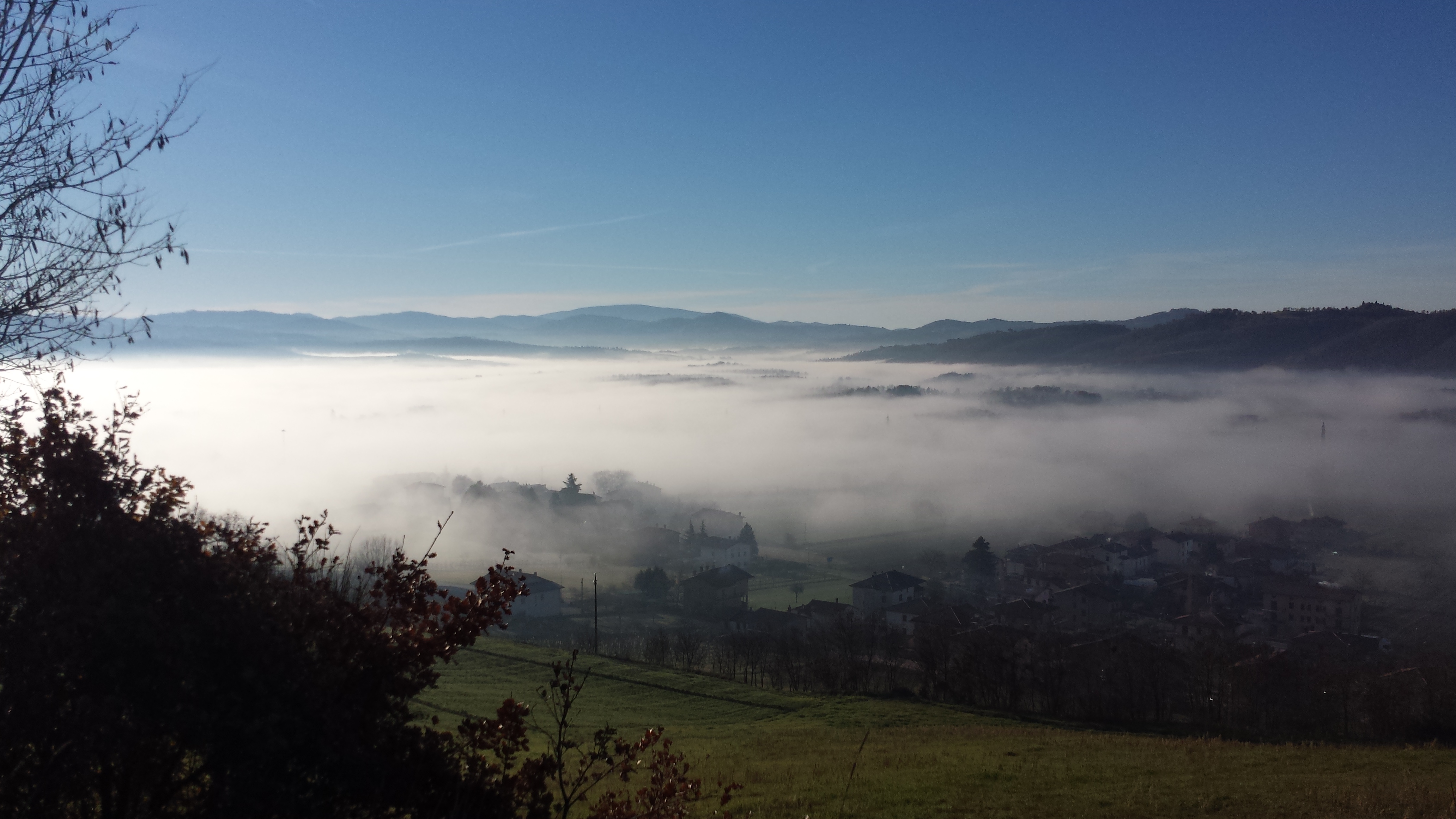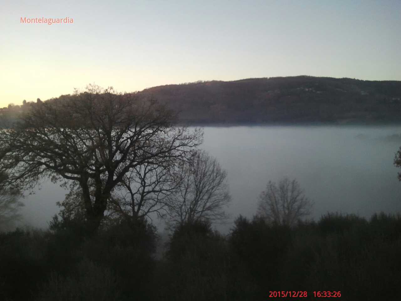 Questa è la Conca Ternana all'alba della mattina di Santo Stefano (ore 6:45) inmortalata da sud est (in località Miranda). A sinistra, all'orizzonte, i "lontani" Monti Cimini del viterbese, coi paesi arrampicati. Al centro la luna che tramonta verso i monti che ci separano da Orvieto, alla sua destra le luci della frazione di Cesi ai piedi dei Martani. Ancora più a destra il grosso della città di Terni che illumina il mare di nebbia. Nel margine inferiore della foto, infine, le alture meridionali cittadine che affiorano. Che ne dite? Complimenti al fotografo!