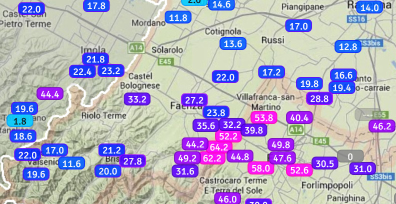 Nella vicinissima Ca' Rossa (FC), addirittura ben 64,2 mm.