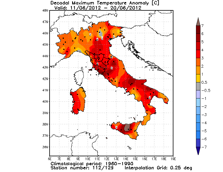 In questo dato nazionale, non pesa molto la situazione termica del nord-Italia del 2012 che abbassa di brutto le medie nazionali? Voglio dire, per quanto riguarda il centro, questo dato non esclude che il 2012 possa essere stato ancora più caldo del 2003...