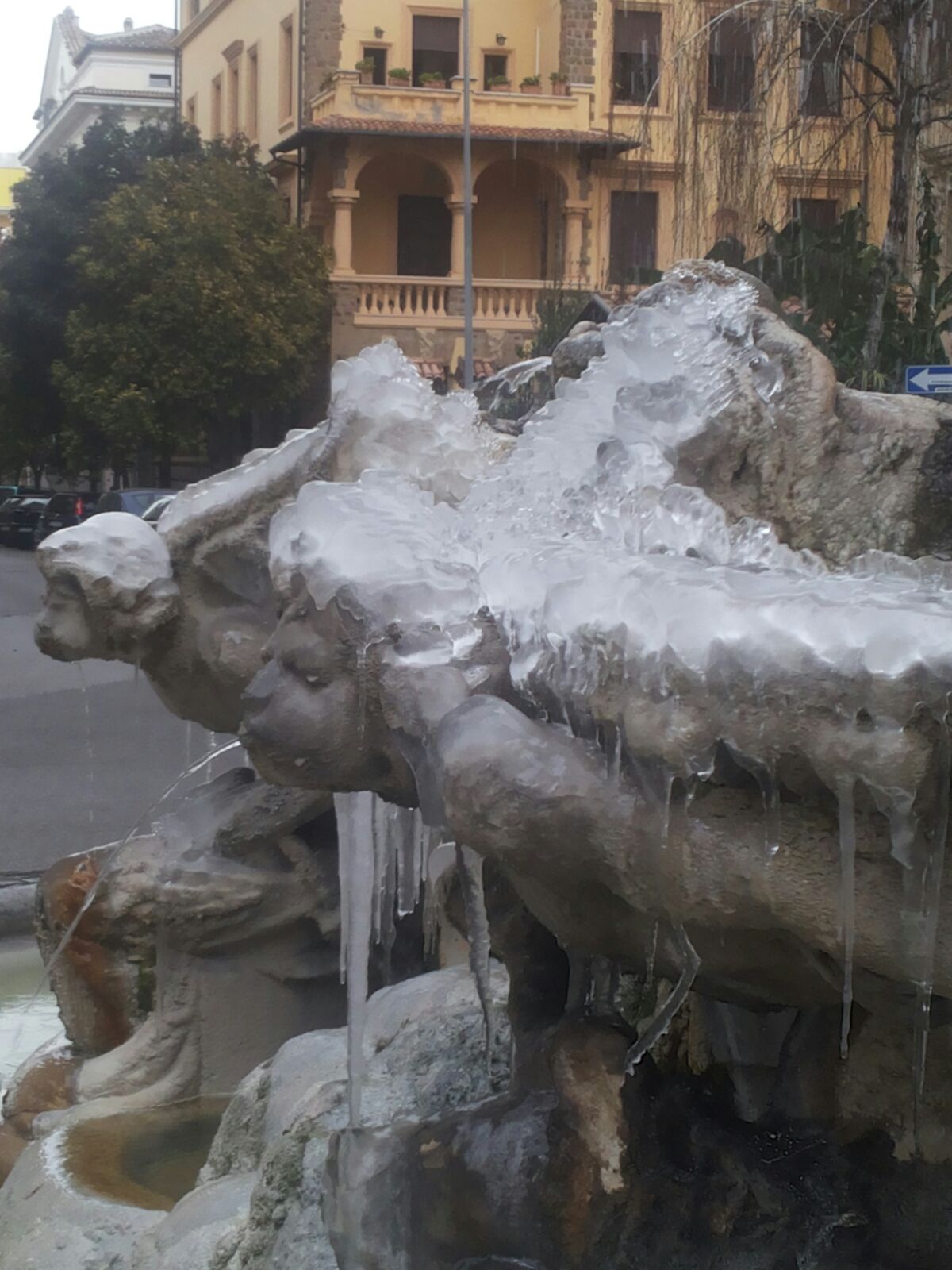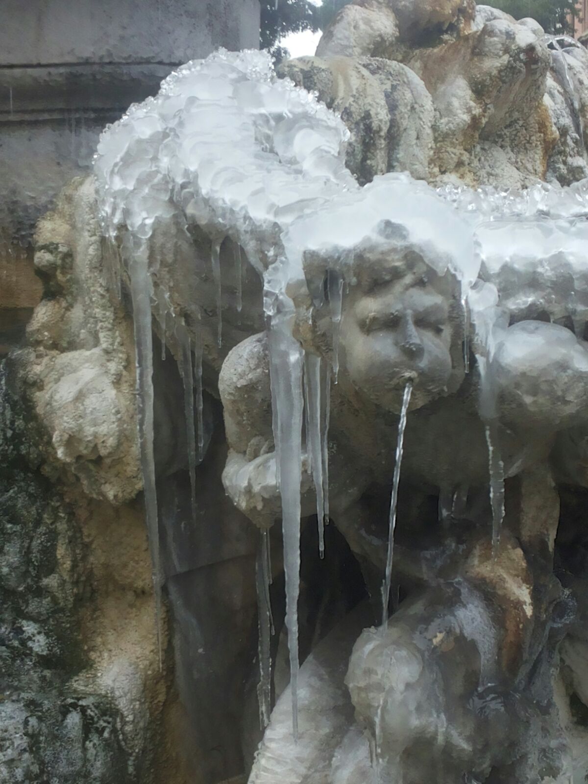 Temperatura che oggi a Roma rimane molto rigida. +1.7 cielo coperto e fontane ancora gelate...un evento per noi...eccone una in zona quartiere Coppede