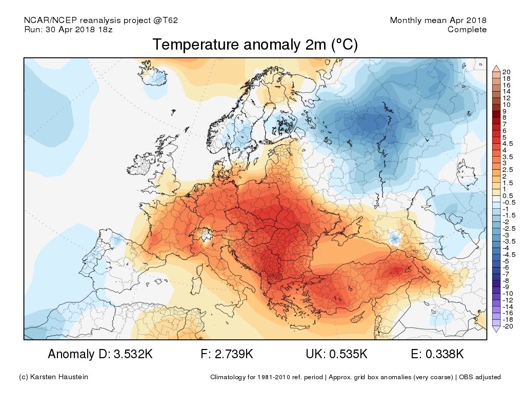 Media: 16,65 (+4,05) Precedente record: Aprile 2016 (non il 2007 in questo caso, 3 decimi sotto): 15,95. Aprile 2018 nuovo mese record di caldo