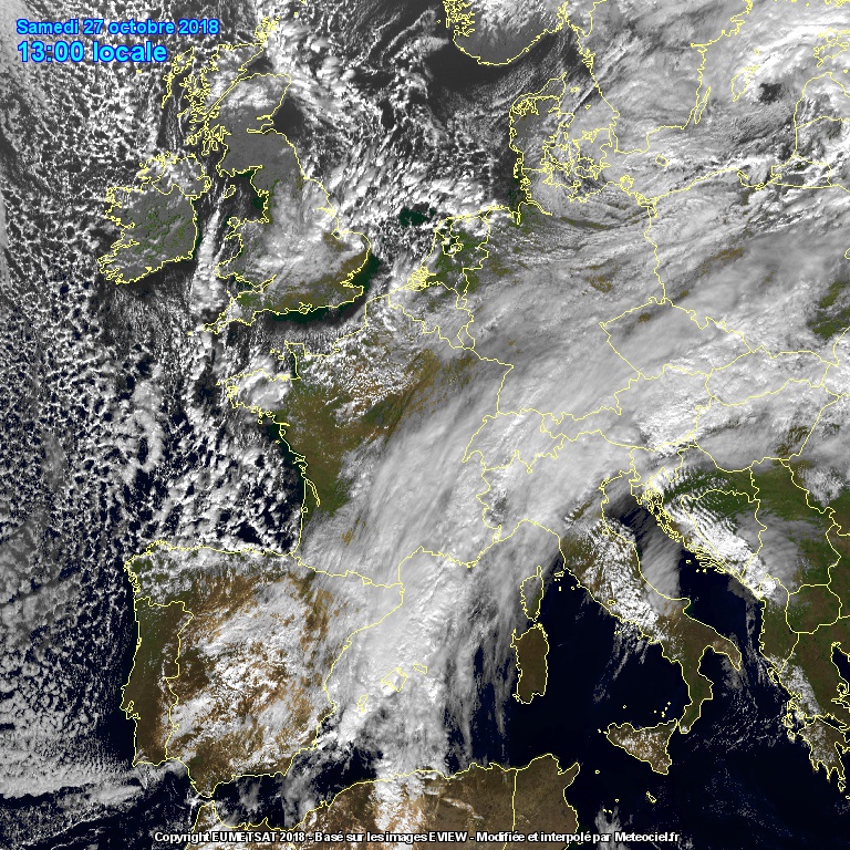 Questa è pura didattica .. la situazione attuale evidenzia l'aria fredda a ovest che delimita bene il suo percorso, attraverso quelle nubi a ciottolo.. nel frattempo a sud e nell'area mediterranea incomincia a strutturarsi la perturbazione