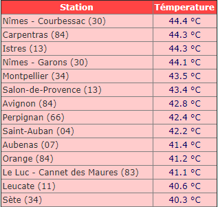 Comunque sembra che Meteofrance non l'abbia considerato attendibile in quanto il record appartiene ai sempre incredibili +45,8° di Gallargues.