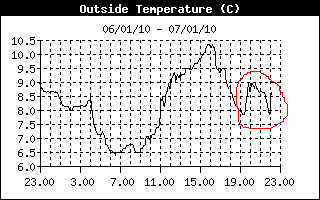 massima +8.8°C ore 14.21, minima +5.4°C ore 08.37