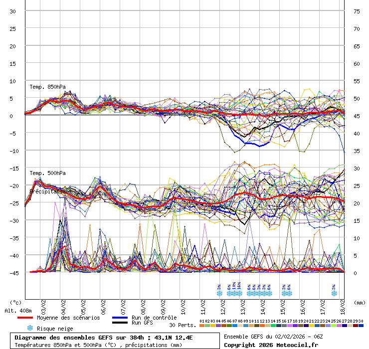 Personalmente, se confermata questa entrata alla ICON o GFS, qui mi aspetto anche 10-15 cm, con spolverate fino a molto ad ovest fino in pianura grazie alla -8/9 a 850 hPa.