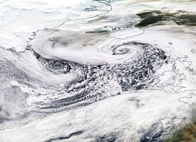 Pauroso il ciclone Dennis nei pressi dell'Islanda, minimo pressorio da 920hpa
