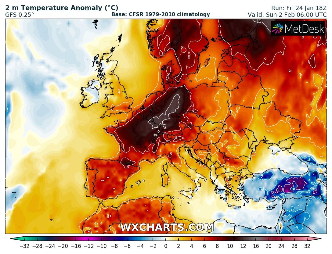 L'onda calda in Atlantico che può risultare buona per generare successivi rientri freddi verso il nostro quadro sembra partirà intorno al 4-6 Febbraio, con effetti tangibili almeno 3-4 giorni dopo, cioè dopo lo sbilanciamento per il reflusso verso Canada, e la fase mite-molto mite Mediterranea di inizio mese...