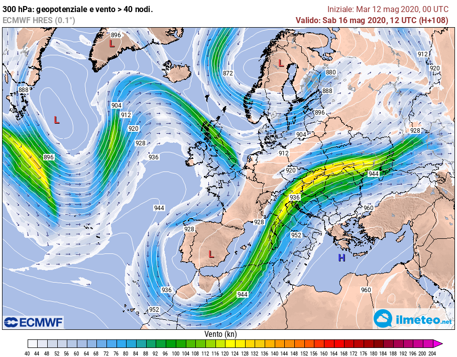 Se si analizza il JetStream a 300hPa si vedono piccolissime differenze, ma davvero fondamentali: