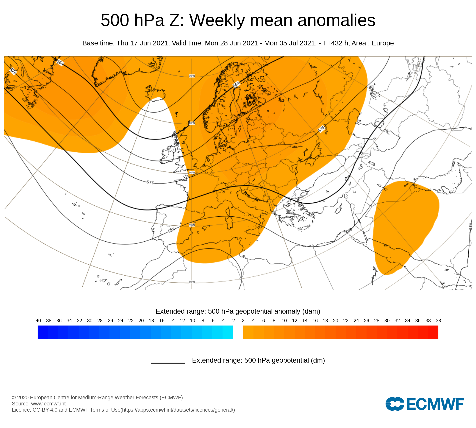 Traducendo in anomalie di geopotenziale il grafico dei WR sopra riportato, secondo ECMWF avremmo questo (e anomalie termiche sottintesamente positive).