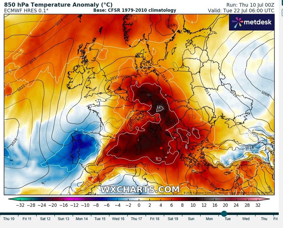 Non concordo sul secondo punto per il medio termine si va su valori anche di +22°C che a metà Luglio fanno molto male.