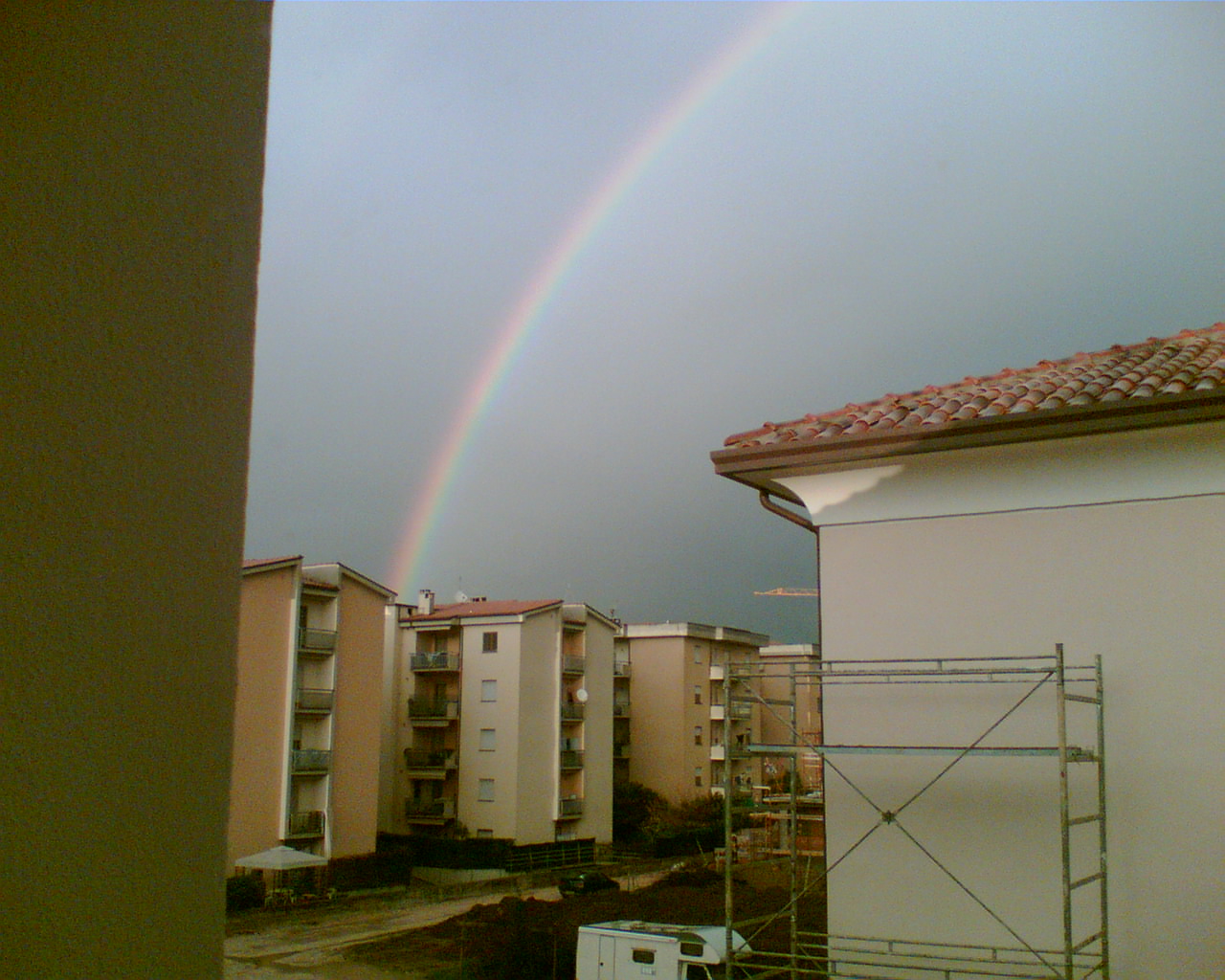 A foligno temperatura di 6.8°, piove debolmente, ecco cosa ha prodotto pochi minuti fa uno squarcio di sole...io con il mio cellulare pronto alla finestra sono riuscito a catturare questo momento!!