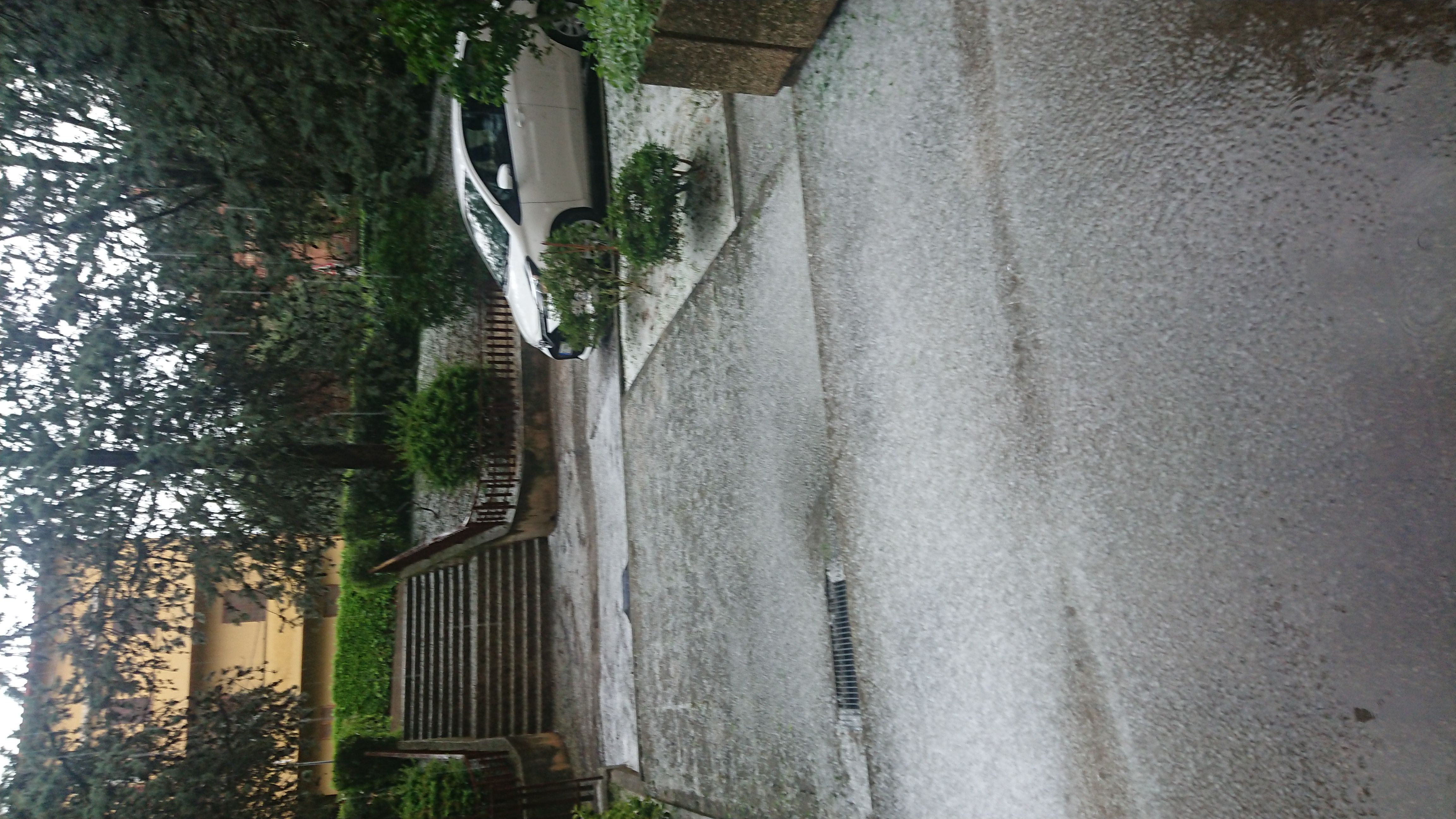 Ho solo un breve video dell'inizio della grandinata, poi ho fatto una corsa a mettere al riparo l'auto di mia moglie. Le dimensioni dopo si son fatte decisamente più importanti. Cmq si sentono già da qui diverse botte dei chicchi più grossi sulle lamiere delle auto.