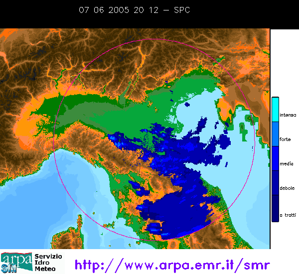 La perturbazione ha comunque sfondato su tutto il versante tirrenico, ed è ancora quasi tutta a Nord dell'Umbria.