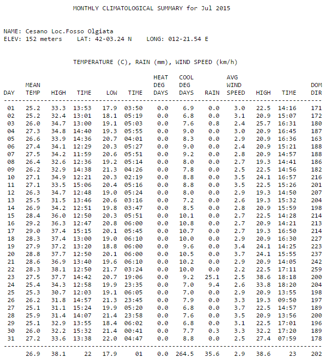 Stefc incredibile come, stando alle tue rilevazioni, il 2014 è stato il luglio + freddo dalle tue parti mentre il luglio 2015 il più caldo...due record opposti di fila!