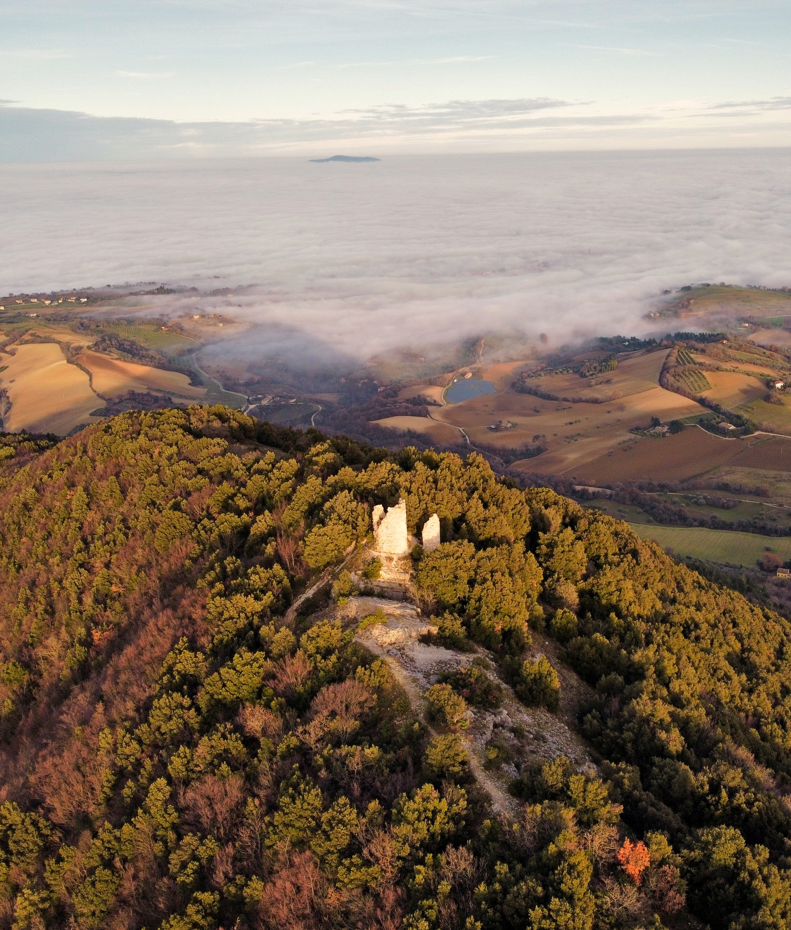 Quella in primo piano nell'ultima foto dovrebbe essere la torre di Pitino, con dietro la vallata del Potenza e San Severino. Ancora più dietro ci sto io.