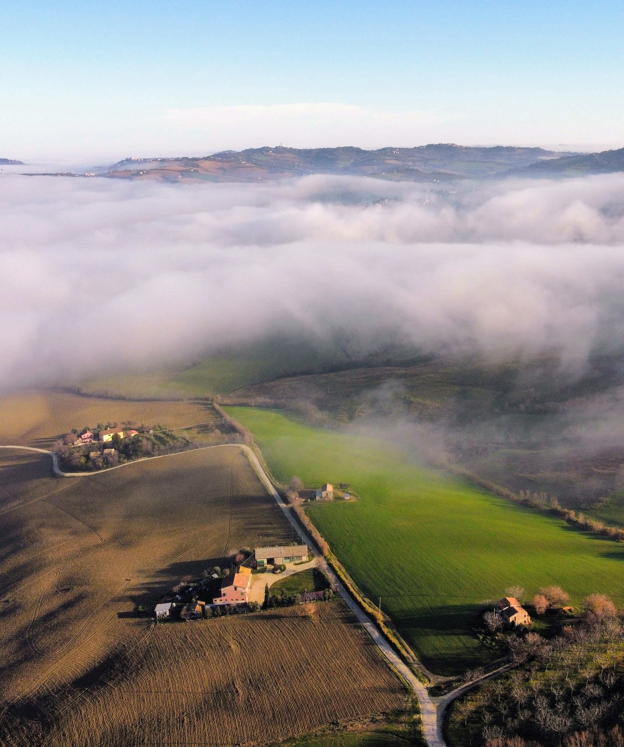Foto di stamani, poco distante da casa ai 300mt di quota, eravamo nella parte confinante tra il sereno e la nebbia che stava avanzando, prima che "inghiottisse" le colline.