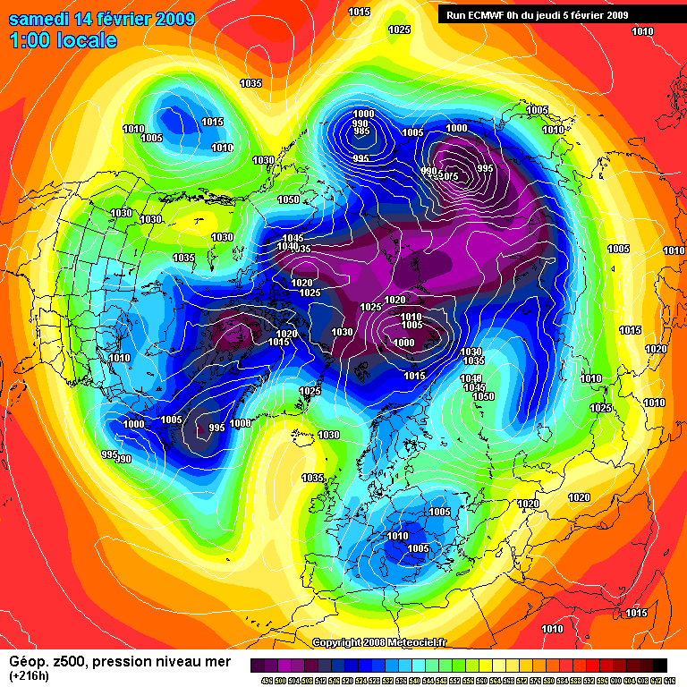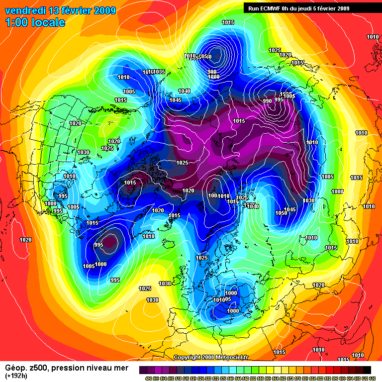 In questa immagine si noti come dallo sbilanciamento artico-pacifico, si passi ad uno sbilanciamento prettamente russo, non vi è infatti più traccia a sinistra del Polo Nord geografico, di uno straccio di lobo del VP, al di fuori di quella minima struttura su Canada settentrionale.