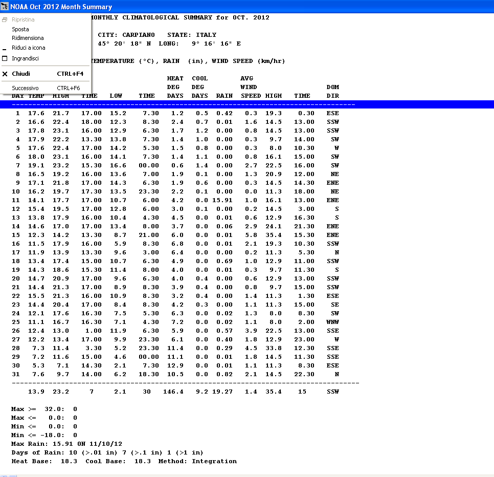 Guarda...io ci ho rinunciato ad usare il report delle precipitazioni. L'ho dovuto riaggiornare a mano un sacco di volte e se ci guardo ora non vedo più i dati dal 2008 al 2010 e quelli del 2011 sono nettamente sbagliati.